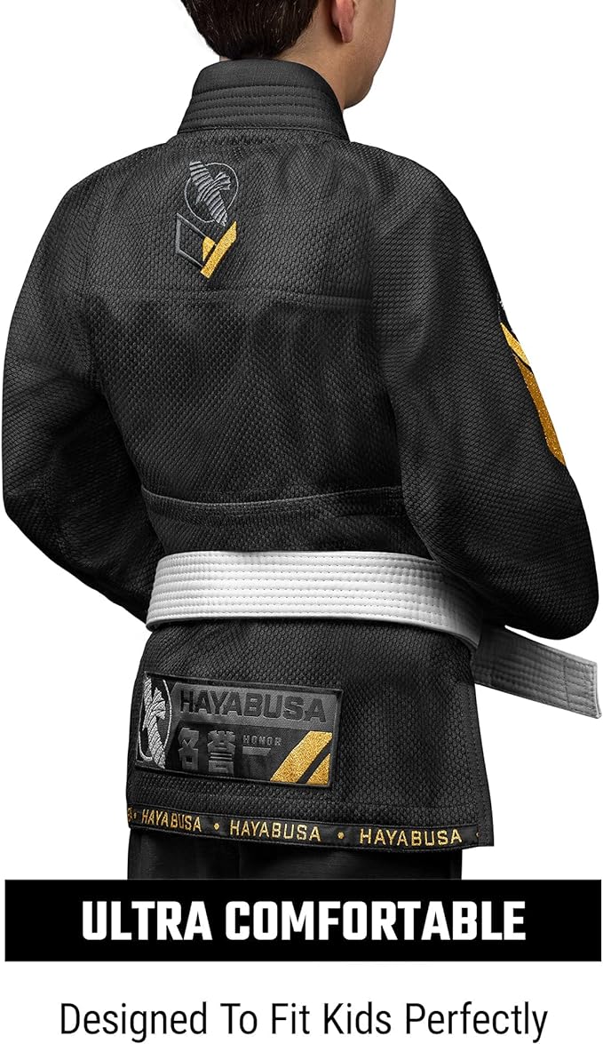 Hayabusa's gi is built to support your kids on their jiu jitsu journey. This gi is constructed with heavy-duty, yet lightweight fabric trusted by professionals in day-to-day training and competitions. Designed specifically for kids, this gi provides the comfort, strength, and range of motion your kids need while they learn the fundamentals. Comes with an ultra-durable white jiu jitsu belt to complete their uniform and get them training without delay.