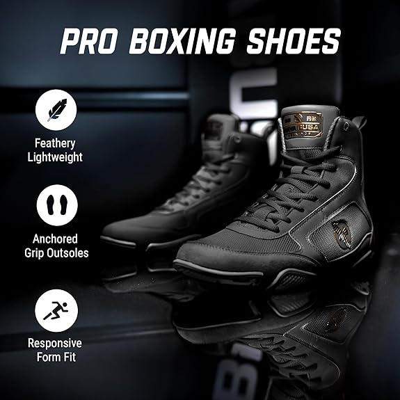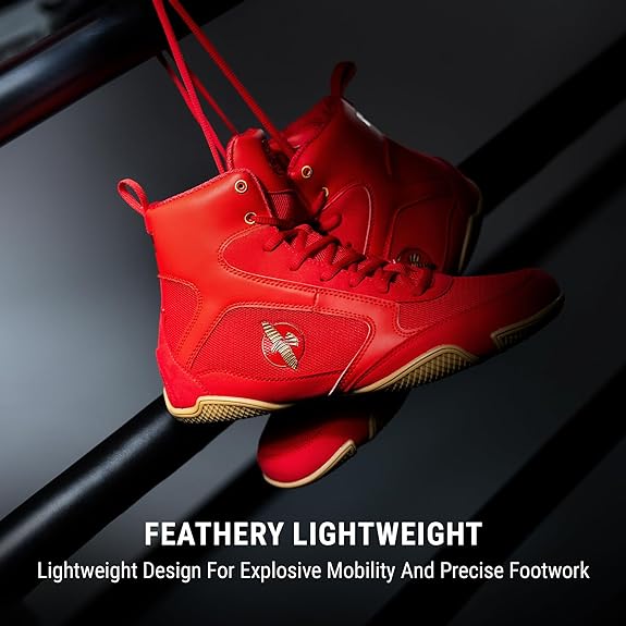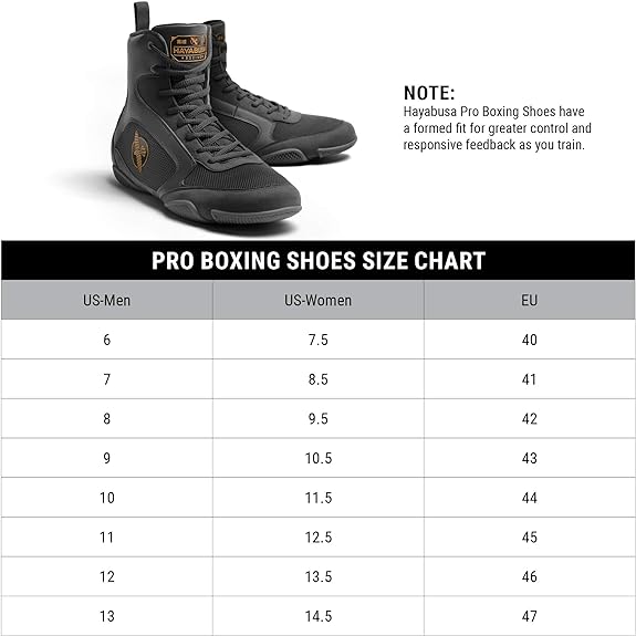 The Hayabusa Pro Boxing Shoes help you move with absolute control in the ring. Their grooved soles provide a stable, anchored grip for pinpoint pivots and maximum power transfer when you throw a punch. Lightweight for explosive mobility and precise footwork, these mid-height shoes make you feel one with the canvas.